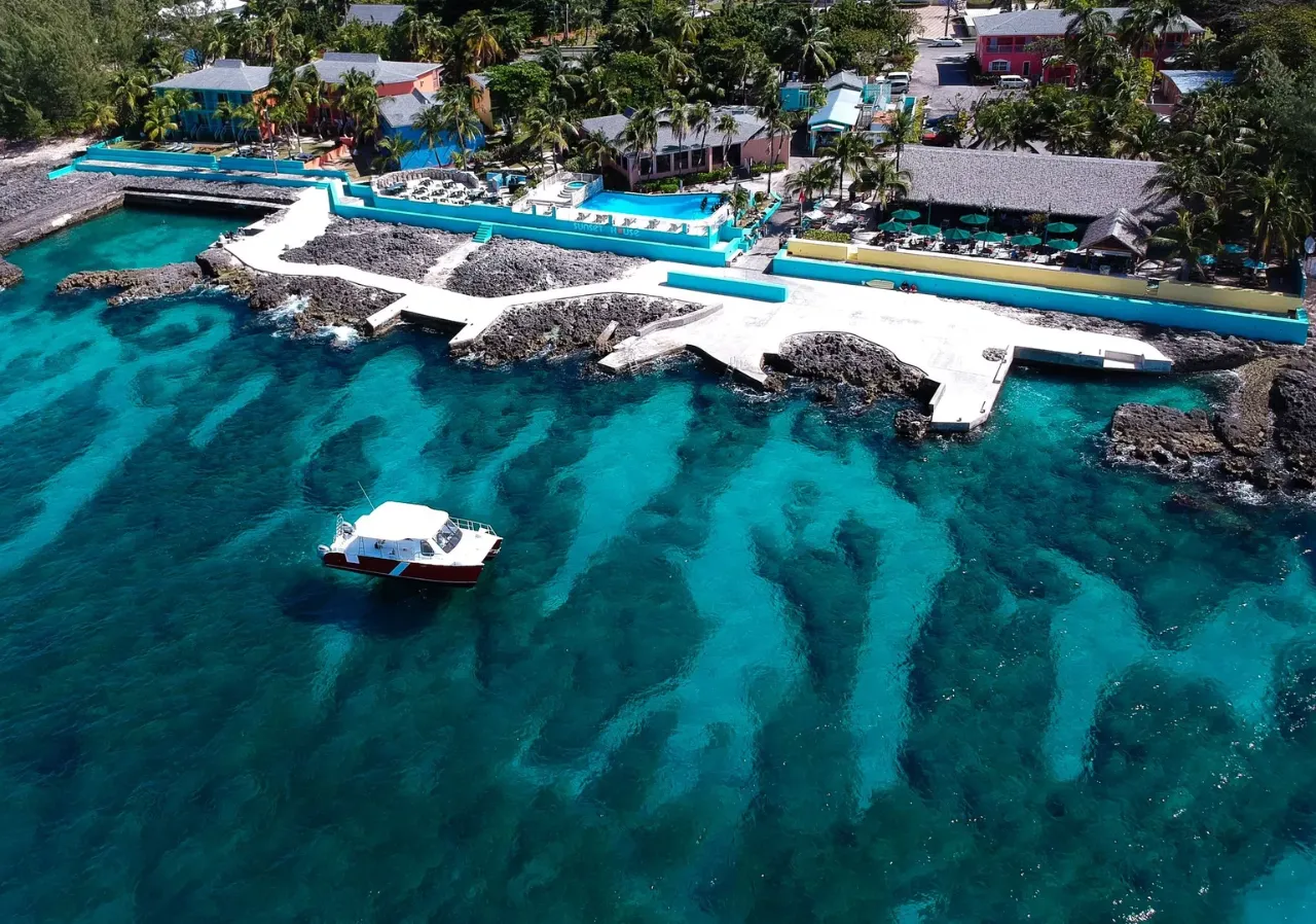 Sunset House is located on a coastal road overlooking the Caribbean sea. The crystal clear waters around Grand Cayman Island offer year-round visibility, warm temperatures and miles of coral reef. Deep drop offs and wrecks create a home for spotted eagle rays, sea turtles and hundreds of colourful reef fish. Sunset House is an intimate, “scuba diving friendly” family-owned hotel with only 36 rooms. Rooms are divided among five two-story, buildings, set against a jagged, rocky shoreline provided extensive diving opportunities to guests. The hotel is a 15 minute walk from George Town. An intimate, white sand beach is a short stroll away. Enjoy fantastic food at My Bar & Sea Harvest restaurant, a huge open-sided, thatch-roofed cabana overlooking the beautiful Caribbean and offering the largest outdoor bar in Grand Cayman. Winner of a 'Best of Caribbean' award, it's been a favourite among locals for 60 years.